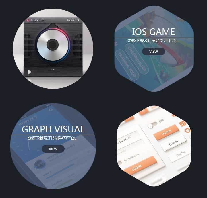 css3制作3款图片悬停遮罩文字效果,圆形图片、六角形图片、五角形图片悬停遮罩动画特效。