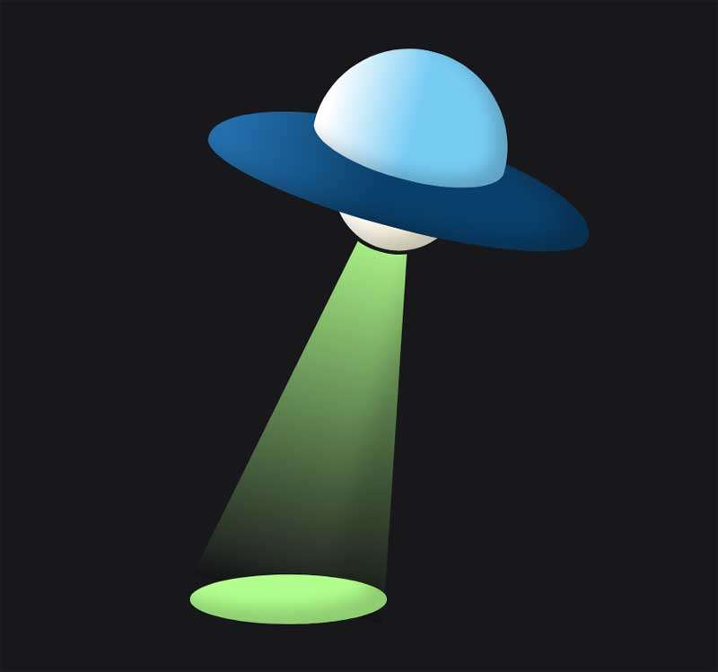 css3属性绘制UFO图形,灯光照射的UFO飞碟图形特效。