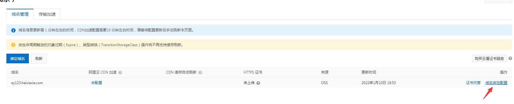 4. 需要信息之一 绑定访问域名,传输管理--->域名管理