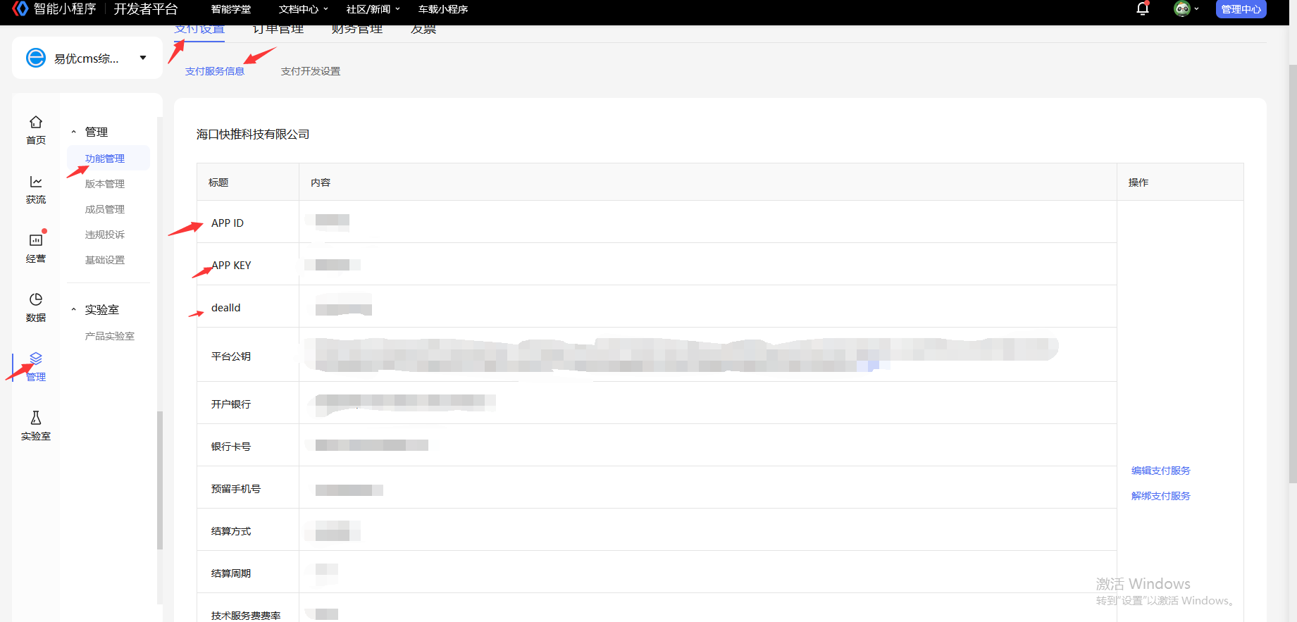 3. 资质审核通过后,可进行开发者信息设置,绑定新的支付服务。