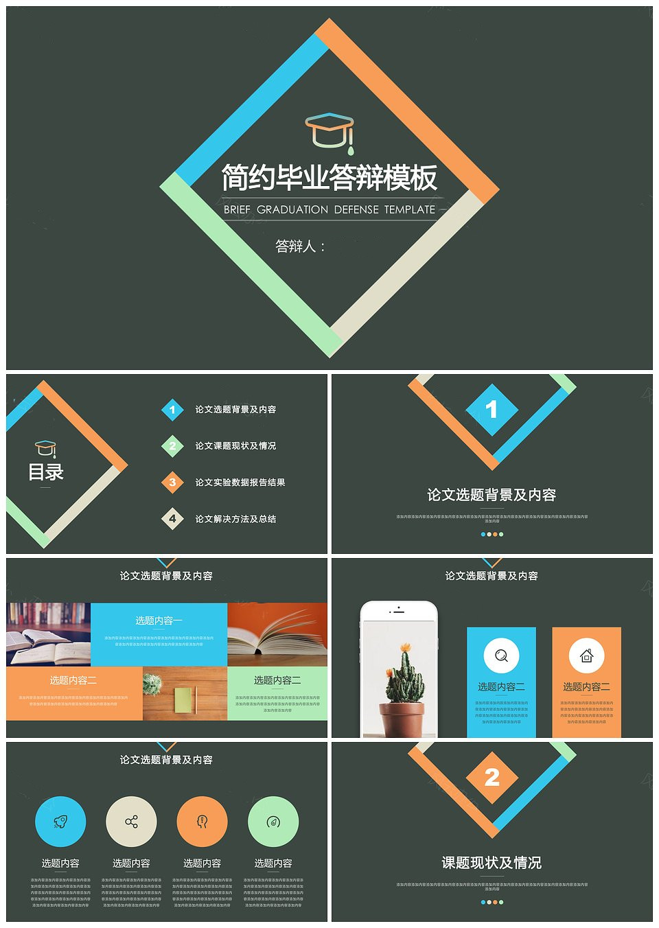 炫彩清新简约毕业论文答辩开题报告PPT模板