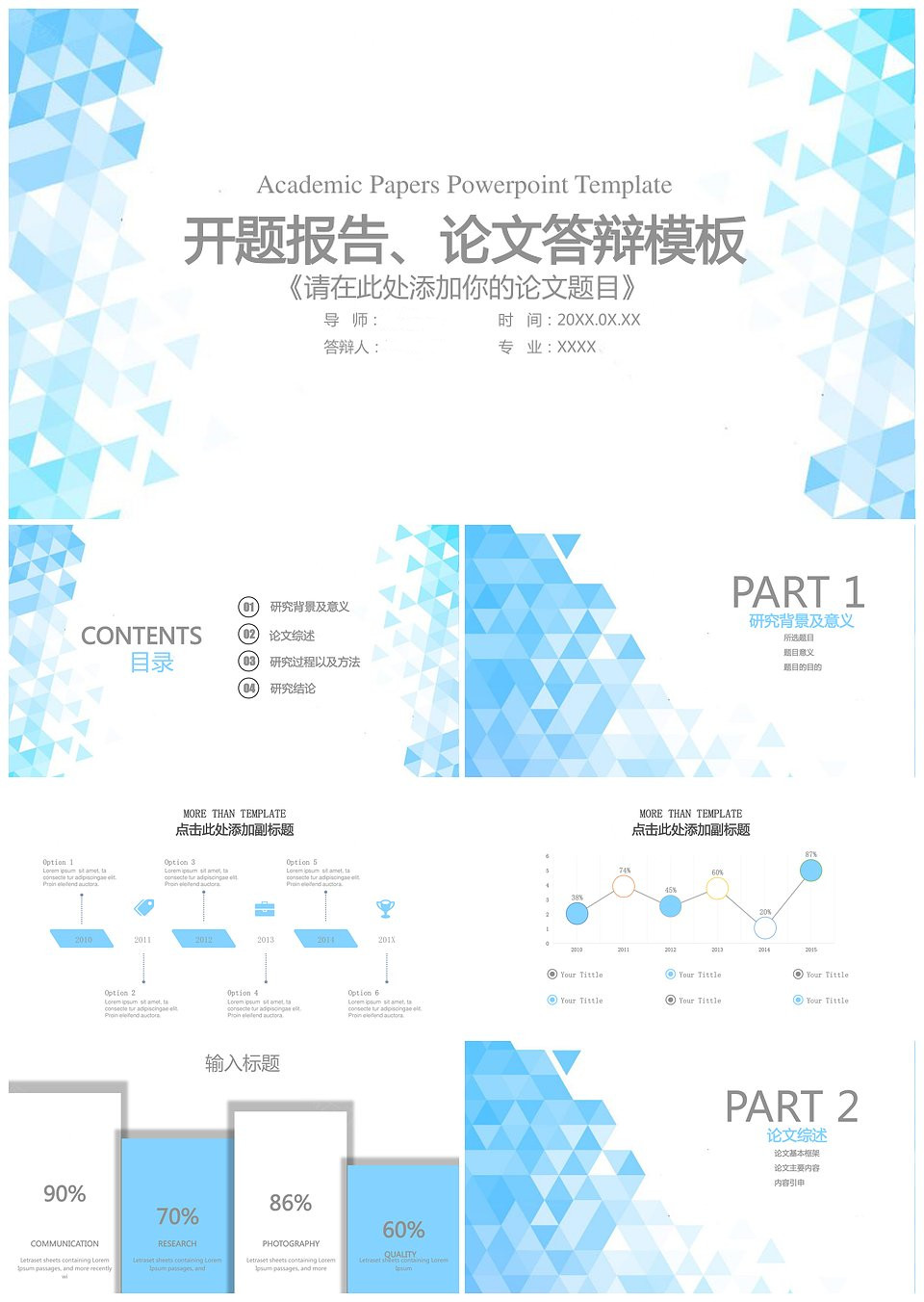 蓝色清新简约动态实用型毕业答辩PPT模板