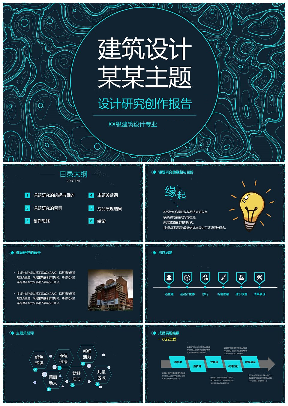 蓝色清新文艺简约通用PPT模板毕业答辩