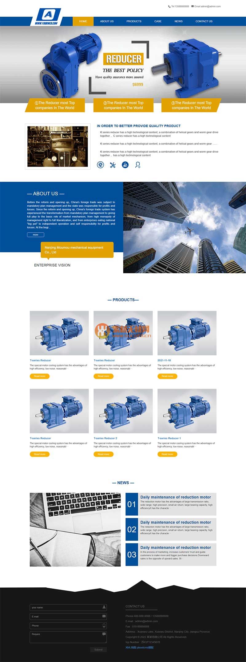 模板名称:(自适应手机端)减速机械液压机设备英文外贸公司通用pbootcms网站模板 蓝色外贸企业网站pb源码下载