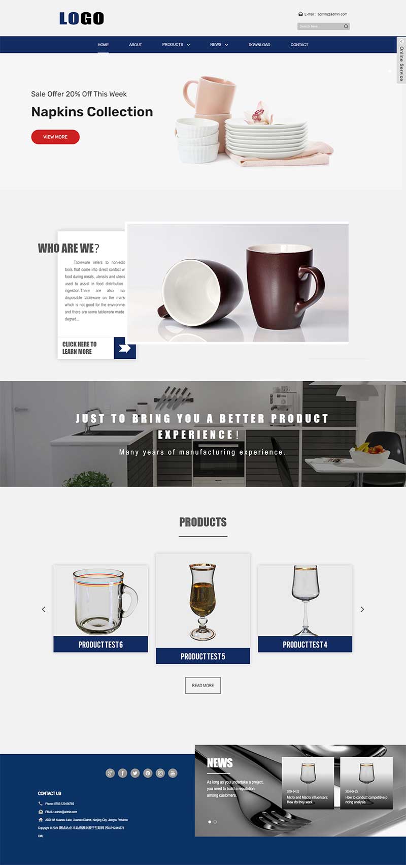 模版名称:(自适应手机端)餐具生活用品网站模版 外贸网站英文模板下载
