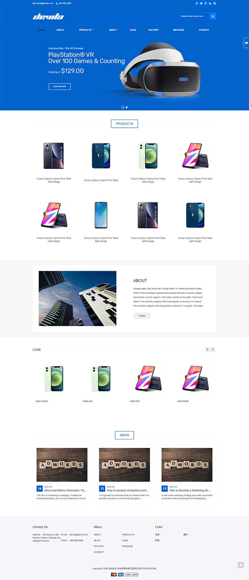 模版名称:(自适应手机端)蓝色英文外贸网站模板 -耳机手机等机械电子网站源码下载