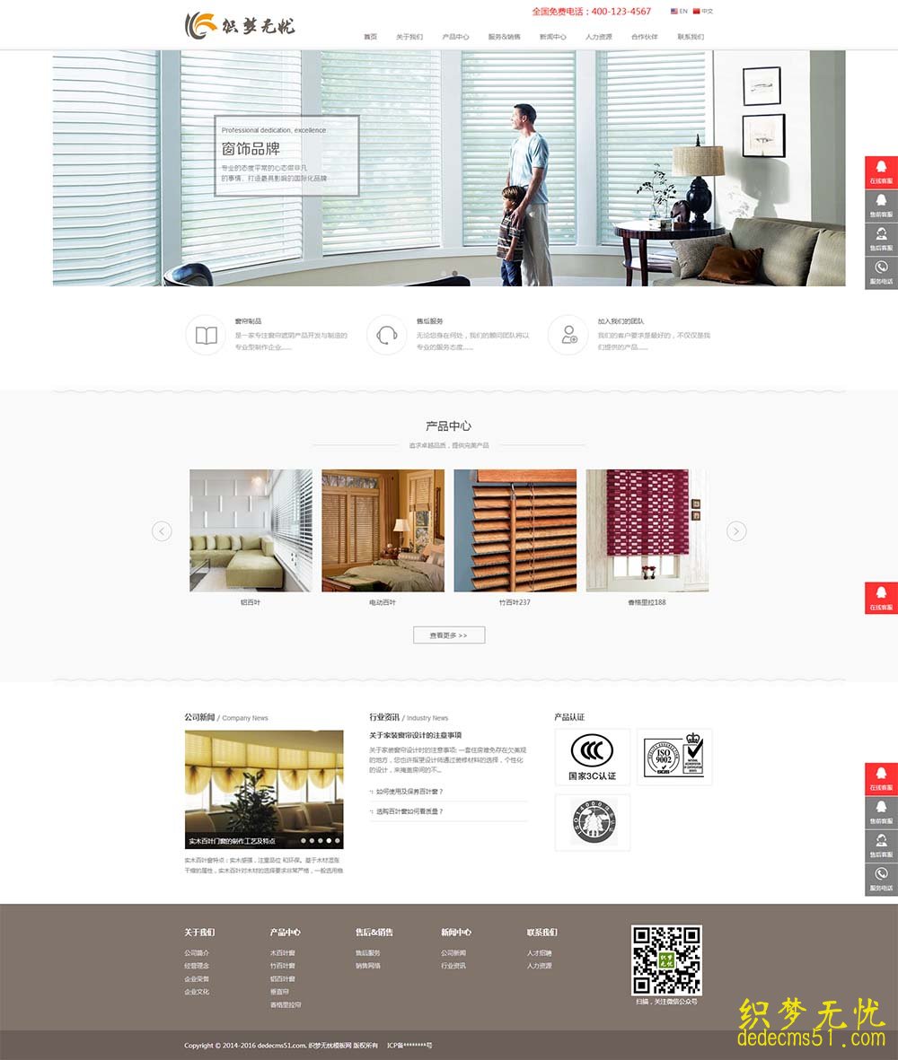 2:织梦最新内核开发的模板,该模板属于中英双语、HTML5响应式、窗帘、门窗类企业使用,一款适用性很强的模板,基本可以适合各行业的企业网站!