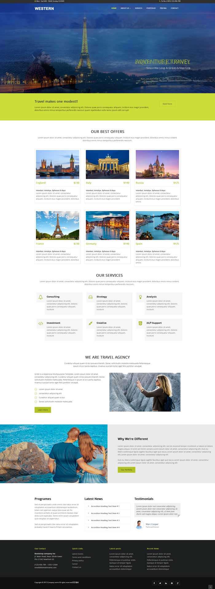 (自适应手机端)pbootcms响应式旅游公司网站模板 蓝色宽屏旅行社网站源码下...