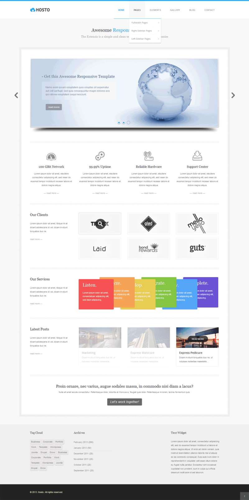 基于Bootstrap框架,蓝色的商业咨询业务公司界面设计模板。模板含3个主页,您可以创建任何类型的数字机构、商业、企业、创业网站。...