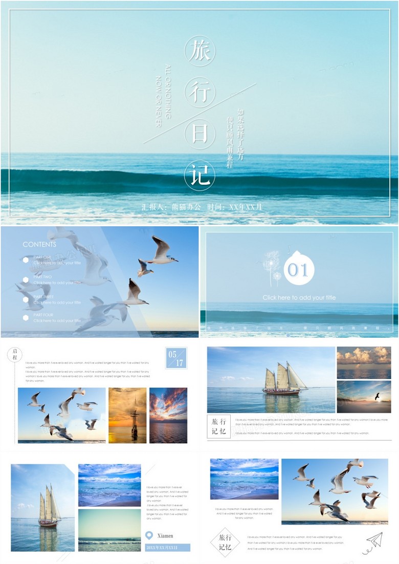 蓝色文艺风通用商务PPT模板