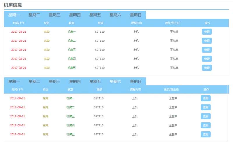 jQuery选项卡滑动查看机房信息,蓝色的课程表滑动选项卡切换代码...