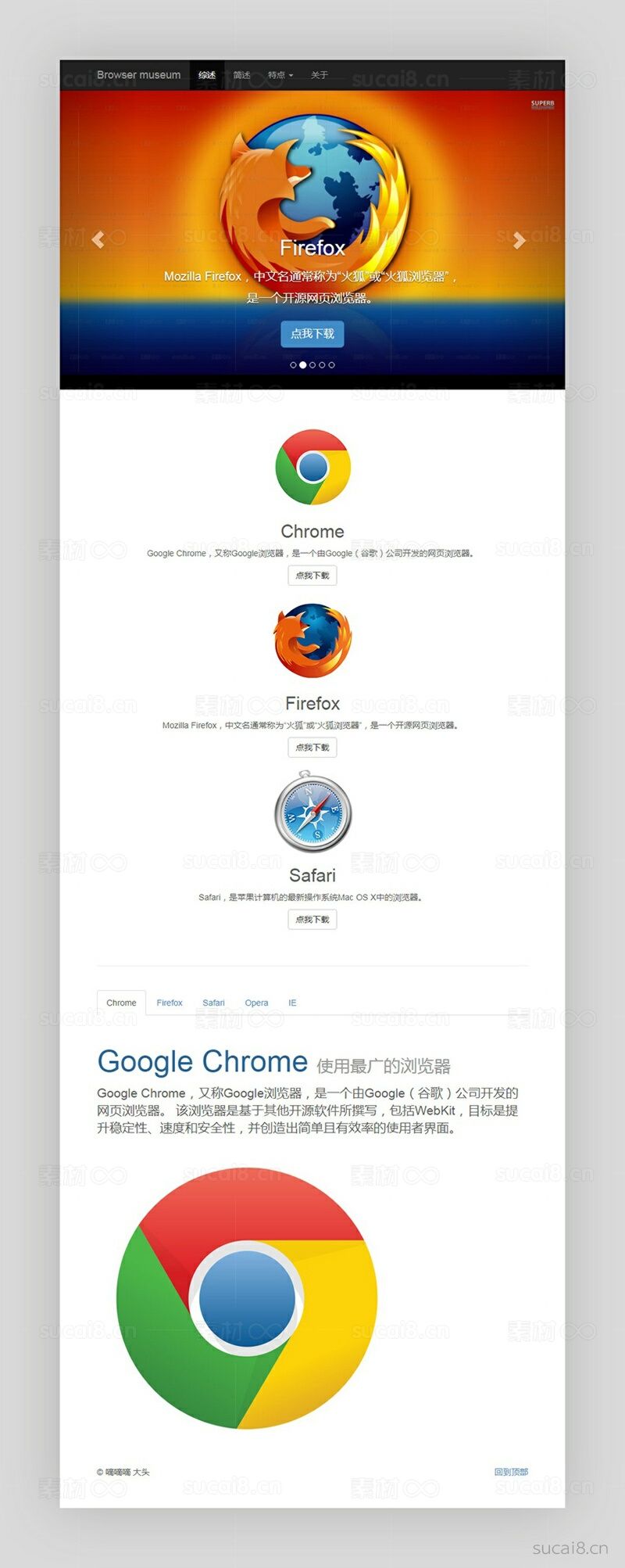 响应式浏览器介绍网页模板,包含可以自适应的焦点图。...