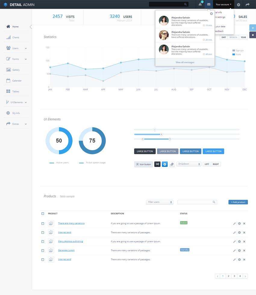 Bootstrap 后台模板 响应式的支持PC 手机 平板...