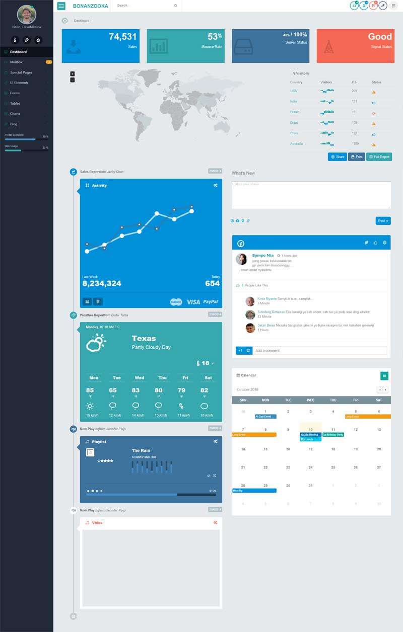 Bonanzooka是基于Angular.js后端框架开发的管理模板,一个充分响应式布局的Web管理后台页面模板由AngularJS制作。因为我们是在做一项web管理页面应用程序,特色是不刷新任何页面就可以加载内容,提高使用者的体验...