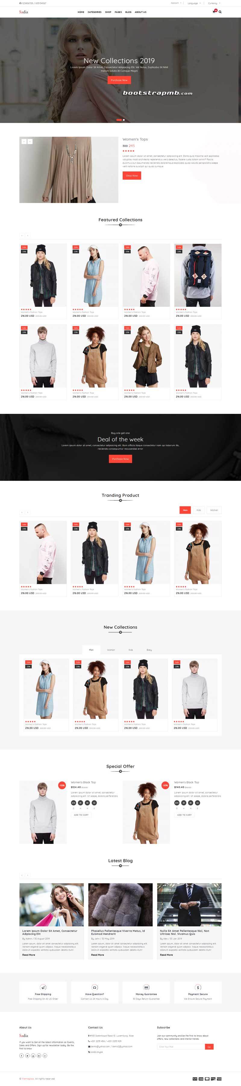 清新的电商网站Bootstrap4模板,用户体验友好的服装箱包类电商HTML5模板。适合在线出售任何商品。基于Bootstrap框架,这个创意的电商网站设计易于使用。...