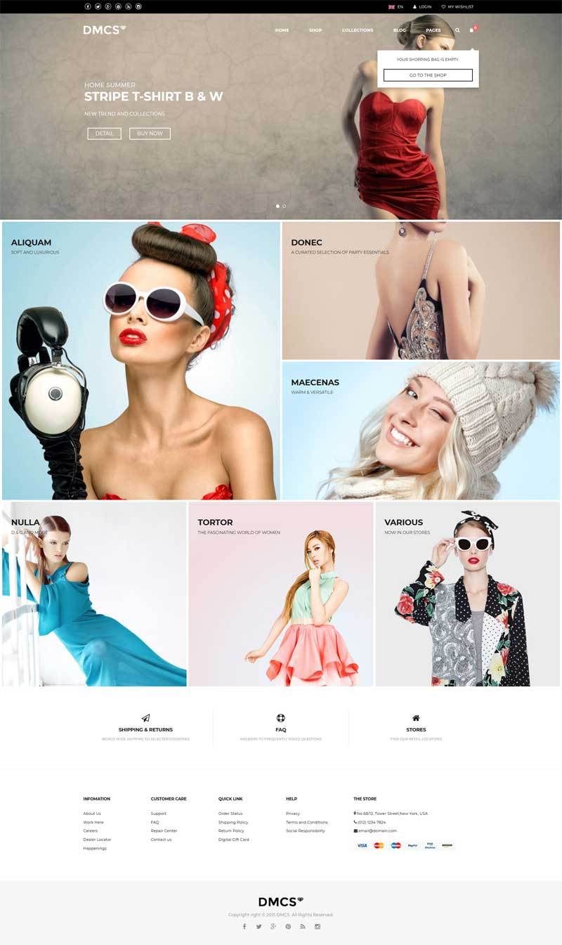 DMCS是一款html5响应式布局,精心设计专门为电子商务服装购物商城网站。它还支持所需的功能对于一个电子商务网站,如大型菜单,移动导航按钮,SEO优化等等。...