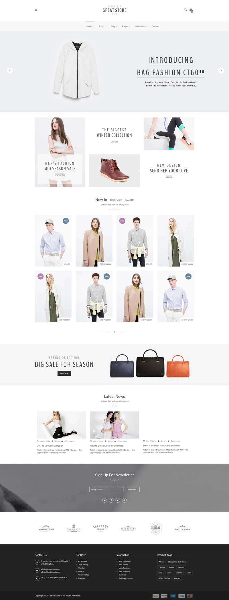 Great Store电子商务时尚服装鞋包商城网站模板,这是一款清洁和优雅的设计,适合销售服装、配饰、数码,孩子,手表,珠宝,鞋子,孩子,家具,体育、工具它有一个充分响应式布局自适应宽度自动调整屏幕大...