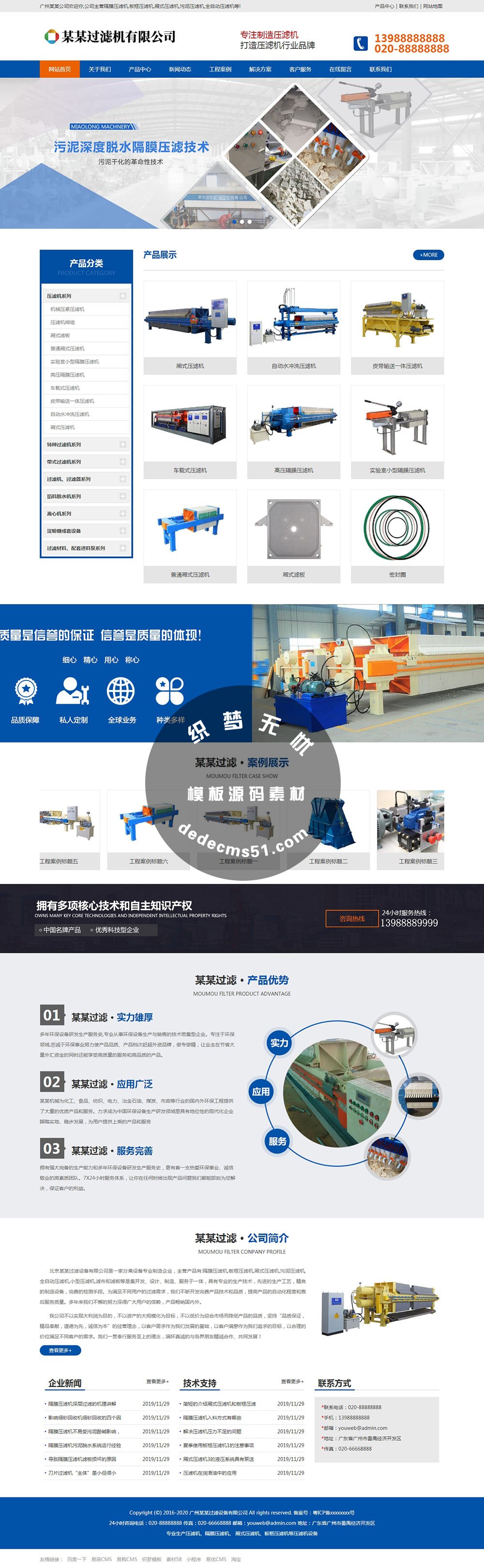 蓝色营销型压滤机过滤设备机械设备网站织梦模板dede源码下载(带手机版)