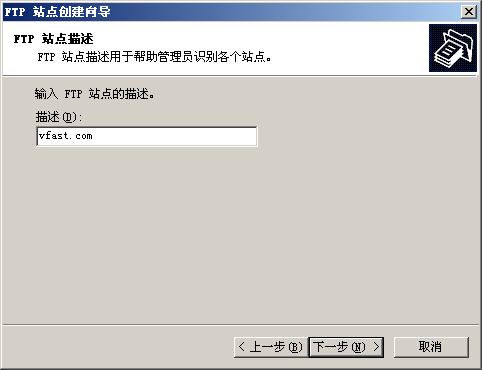 1)在按完IIS服务后,系统会默认给出FTP站点,我们可以删掉默认的自己从新建立。右击FTP站点,新建FTP站点,进行站点的描述,可以是公司的名称
